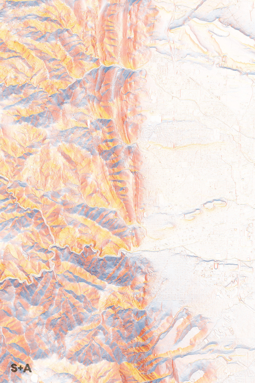 The Flatirons pop up from Chautauqua Park just above the campus of CU Boulder. The steep faces of these shear rocks make for some great rock climbing. To the north, the map centers on Boulder Creek, which flows down from the Rocky Mountains, through the Front Range, and into downtown Boulder, just south of Pearl Street. On a bike, try out the harrowing switchbacks of the Flagstaff hill climb.