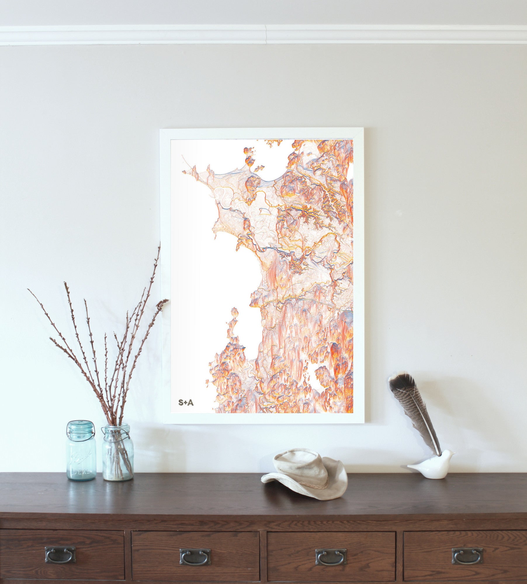 - Maps are printed full bleed, but provide a 1/2-inch for matting and/or framing